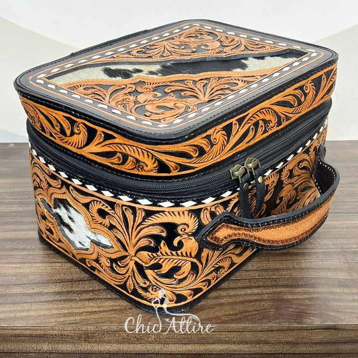 Product name:Hand Tooled Cowhide Leather Women's Makeup Bag
