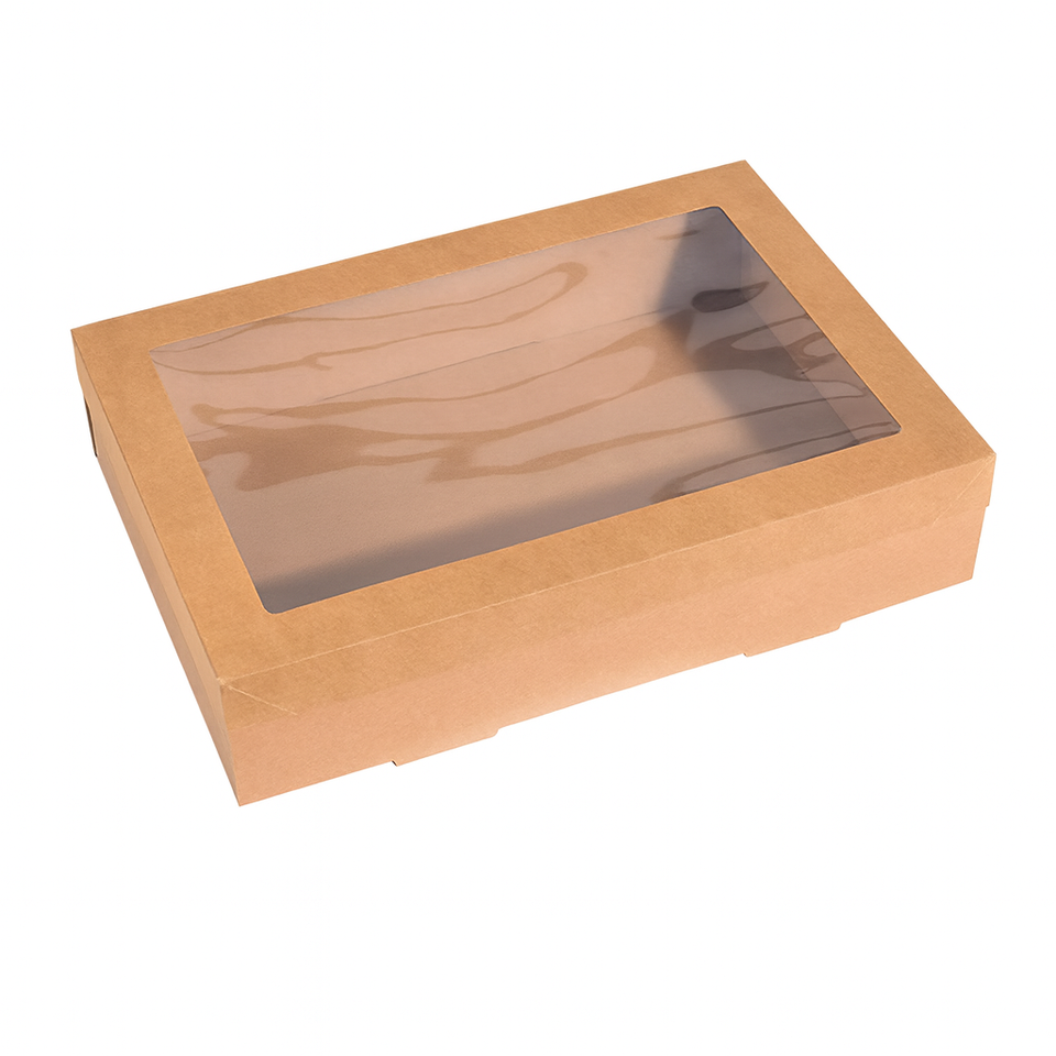 กล่องของขวัญคราฟท์ขนาดใหญ่แบบกำหนดเองหน้าต่างใสสำหรับเบเกอรี่ขนมหวานเค้กแซนวิชกล่องใส่อาหาร