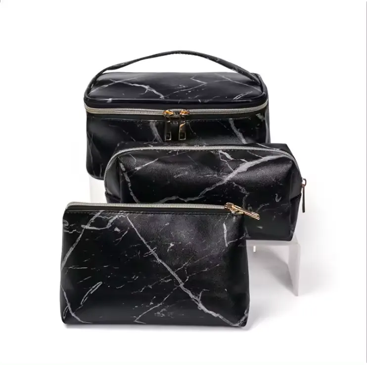 กระเป๋าเครื่องสำอางลายตัวอักษรกระเป๋าใส่เครื่องสำอางกระเป๋าใส่เครื่องสำอางแบบมีซิปปิดหนัง PU ขนาดใหญ่ออกแบบได้ตามต้องการ