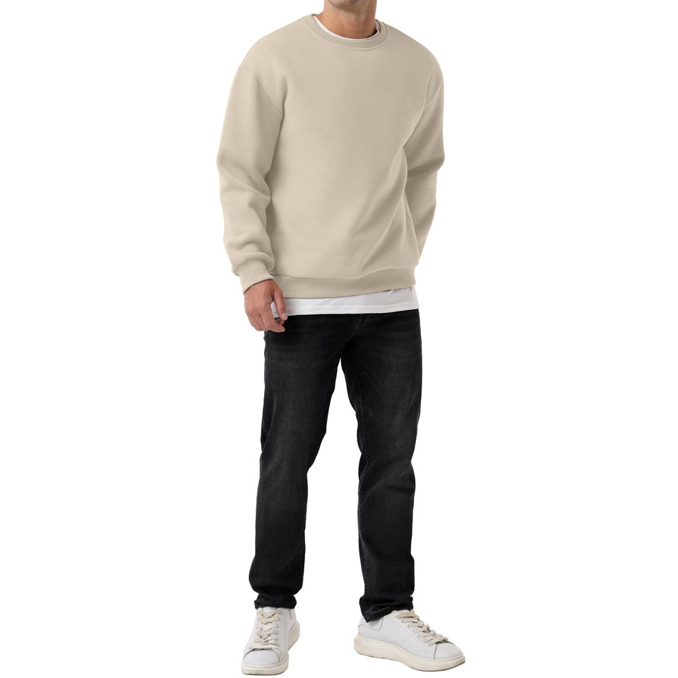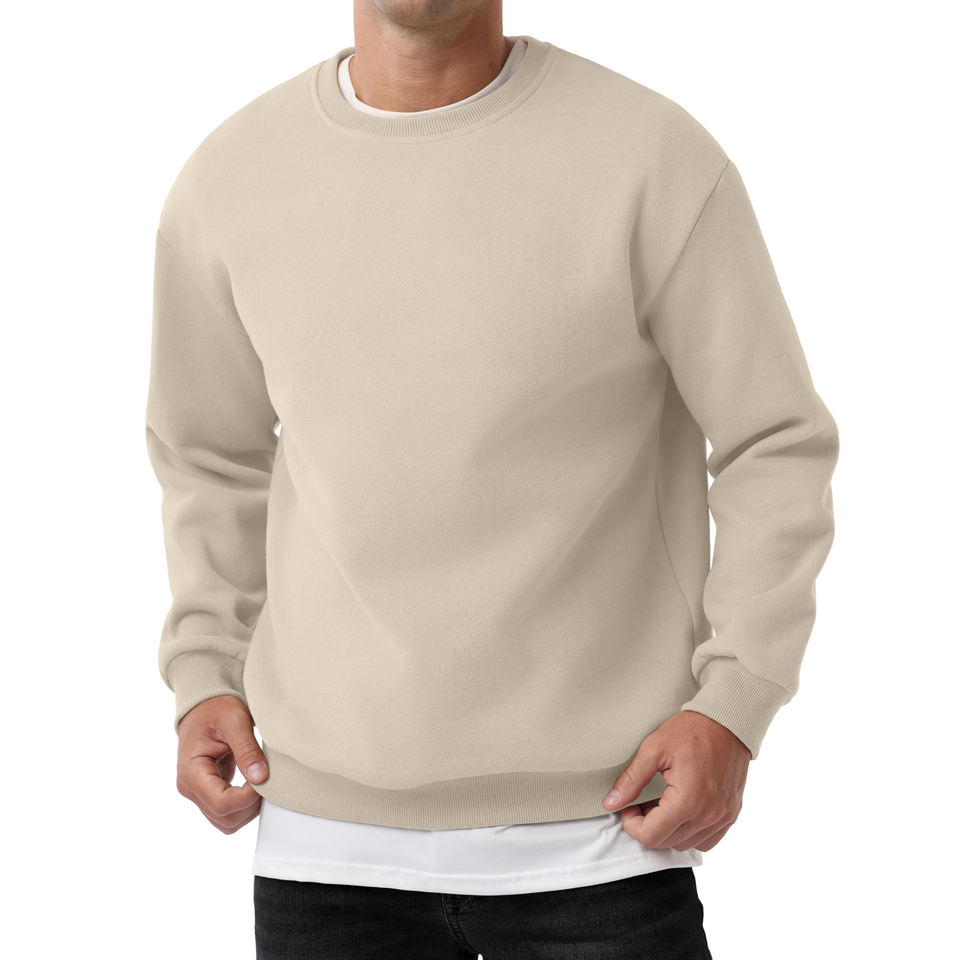 เสื้อสเวตเชิ้ตผู้ชายไซส์ใหญ่พิเศษ ผ้าฝ้ายฟลีซ ระบายอากาศดี คอกลม แขนเสื้อแบบดรอปโชว์เดอร์ ดีไซน์เรียบง่าย