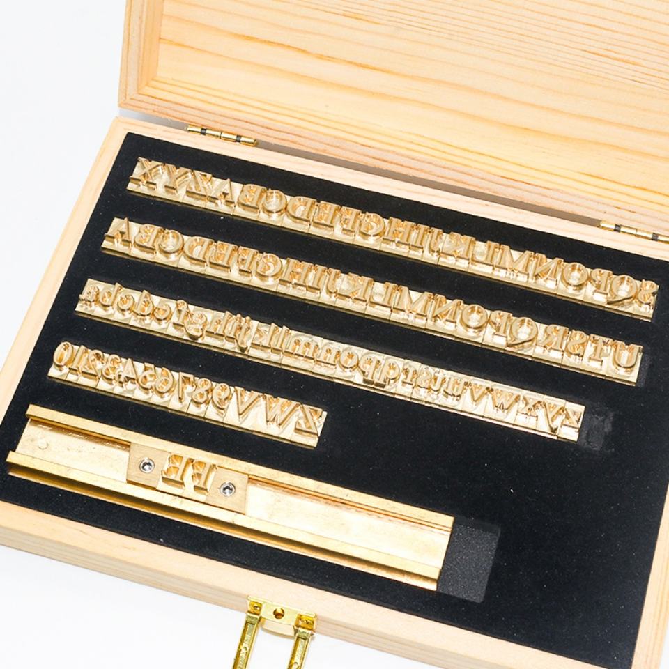 แม่พิมพ์ตัวอักษรและตัวเลขทองเหลืองสลักเลเซอร์แบบกำหนดเอง สำหรับปั๊มฟอยล์ร้อนบนหนัง/ไม้