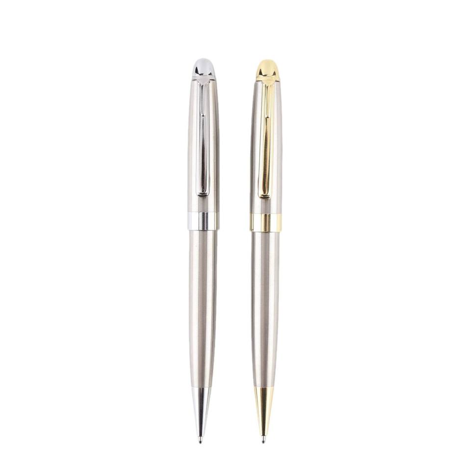 ปากกาลูกลื่นโลหะสลักเลเซอร์โลโก้ตามสั่ง ขนาดหัวเขียน 1.0 มม. หมึกสีน้ำเงิน/ดำ สำหรับใช้ในงานส่งเสริมการขายและกิจกรรมองค์กร