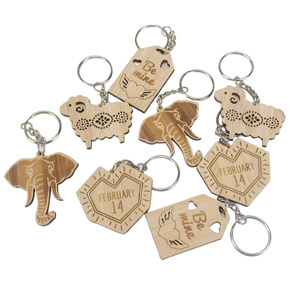 เลเซอร์ที่กำหนดเองสลักแท็กสัตว์เลี้ยงพวงกุญแจไม้