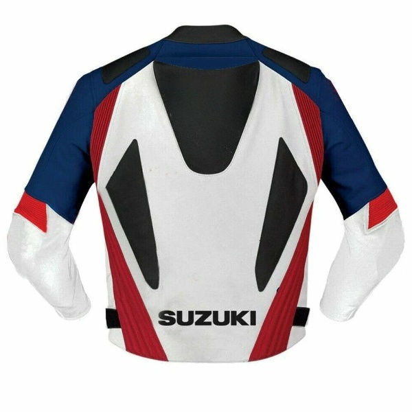 เสื้อแจ็กเก็ตมอเตอร์ไซค์หุ้มเกราะหนังออกแบบได้ตามต้องการแจ็กเก็ตนิรภัยสำหรับนักแข่งรถจักรยานยนต์ Suzuki