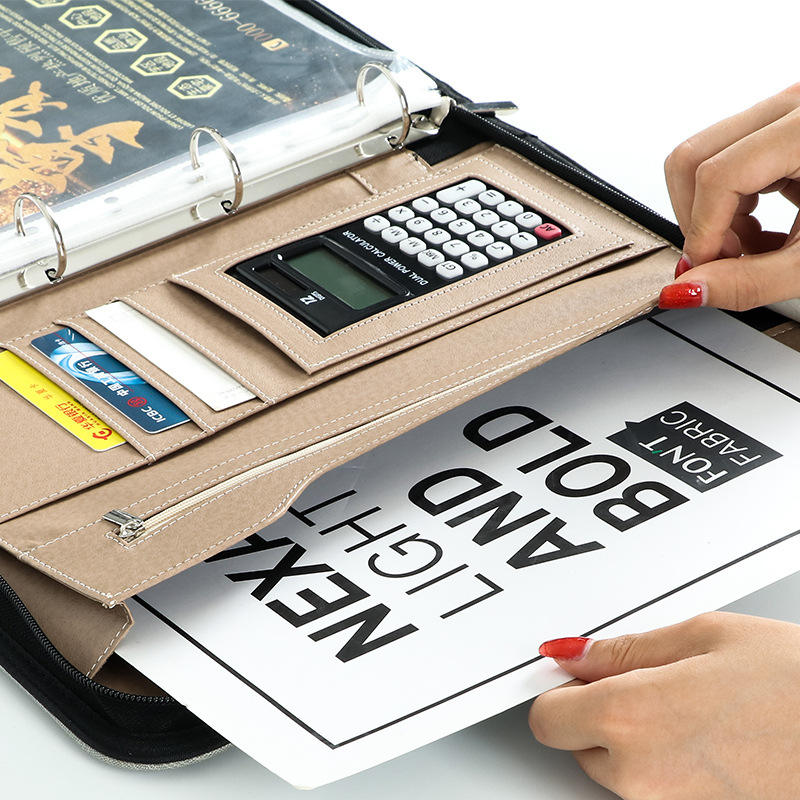 กระเป๋าเอกสารหนังแท้แบบกำหนดเอง 26.5x34.5 ซม. พร้อมเครื่องคิดเลข แฟ้มธุรกิจ กระเป๋าเอกสารสำหรับใช้ในสำนักงาน