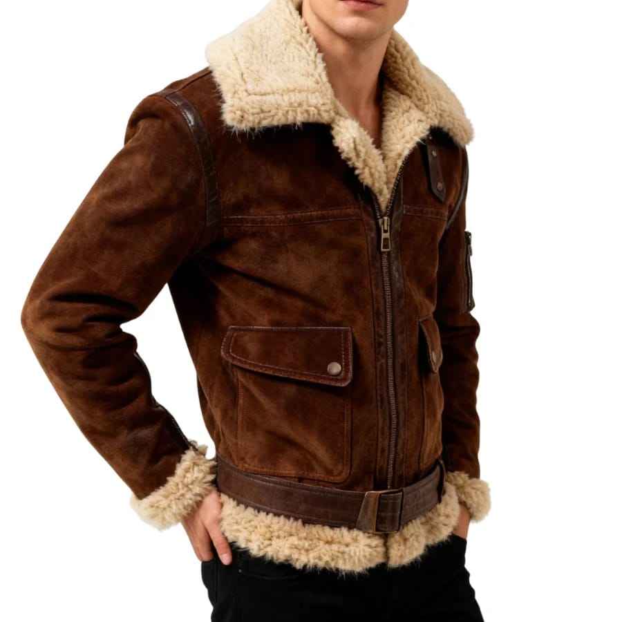 แจ็คเก็ตหนังสั่งทำพิเศษ แฟชั่นผู้ชาย แจ็คเก็ตหนังกันลม แจ็คเก็ตหนังกลับคุณภาพสูง พร้อมขนเฟอร์เทียม สไตล์สตรีทแวร์