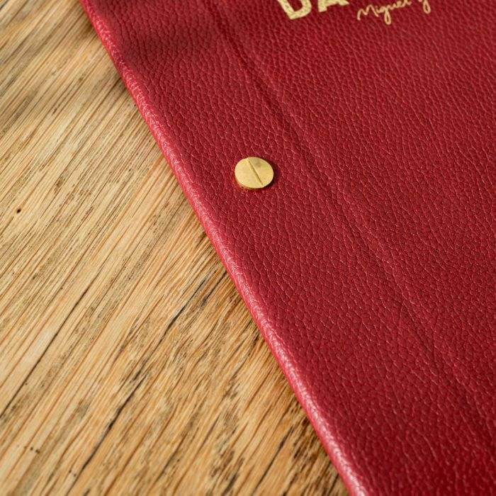 ปกเมนูหนังสั่งทำแบบสกรูโพสต์ บินดิ้งสองแผ่น ขนาดตามสั่ง