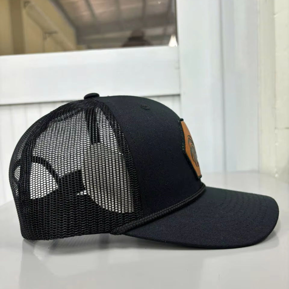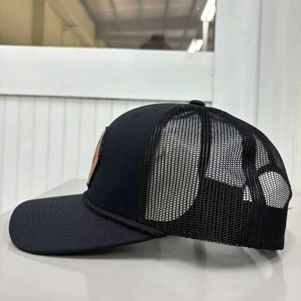 หมวกแก๊ปหนังปักลายโลโก้หมวกทรักเกอร์6แผงกลางโปรไฟล์กลางสำหรับ3D เย็บปักโลโก้ตามสั่ง