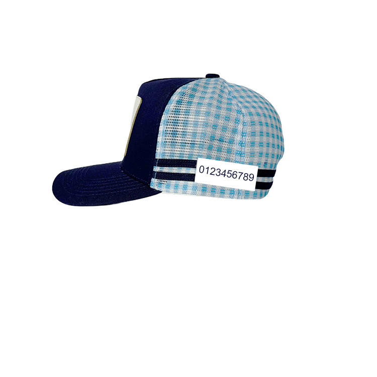 หมวกเบสบอลติดด้านหลังแบบตาข่ายพิมพ์ลาย5แผงโลโก้แผ่นหนังออกแบบได้ตามต้องการ