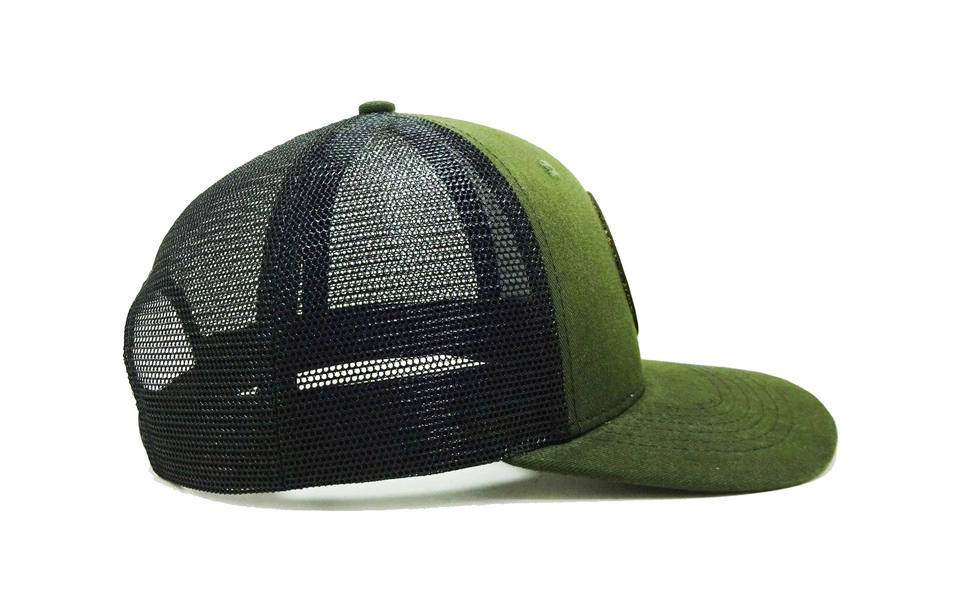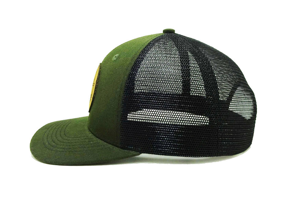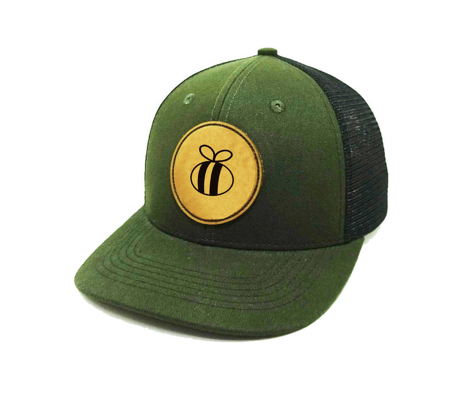 หมวกตาข่ายหนังสีเขียวมะกอกสำหรับผู้ชายและผู้หญิงหมวกแก๊ปตาข่ายปรับได้โลโก้ผึ้ง