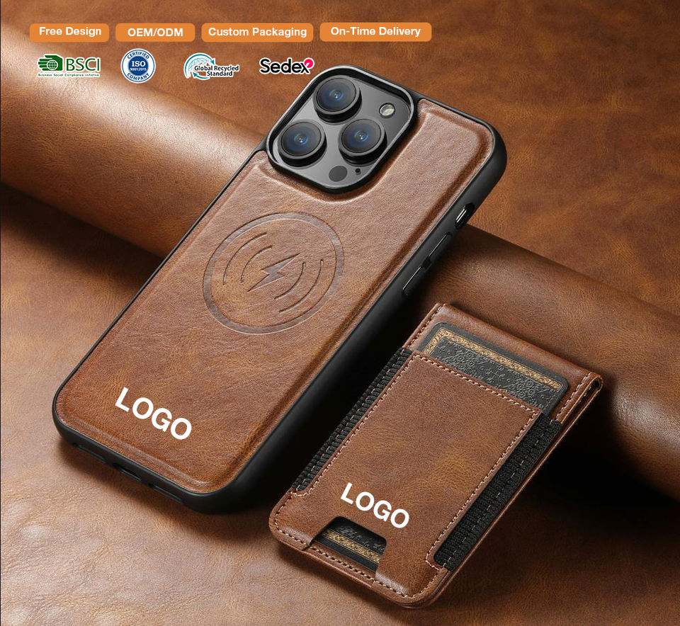 เคสโทรศัพท์หนังแบบกำหนดเอง พร้อมที่ชาร์จไร้สายและที่ใส่บัตรแม่เหล็ก สำหรับ iPhone 17 16 15 14 13 Pro Max เคสโทรศัพท์แบบกำหนดเอง
