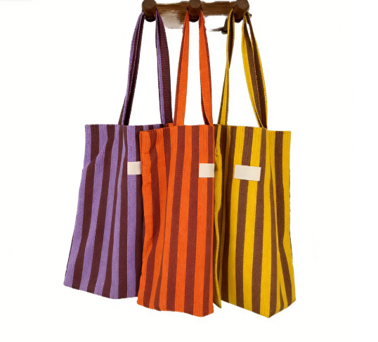 กระเป๋าผ้าแคนวาสแบบสะพายไหล่พร้อมช่องซิปด้านใน ความจุเยอะ กระเป๋าถือรักษ์โลก กระเป๋าช้อปปิ้งแบบมีริบบิ้น