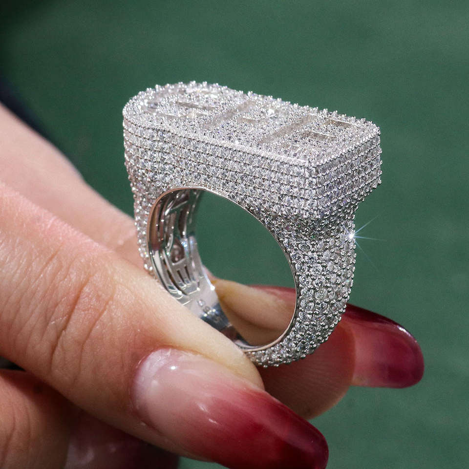 แหวนมอสซาไนต์รูปตัวอักษร GPE แบบกำหนดเองสำหรับผู้หญิง ประดับเพชรทรงบาแกตต์ วงแหวนเงินแท้ชุบทองคำขาว สไตล์ฮิปฮอปคลาสสิก