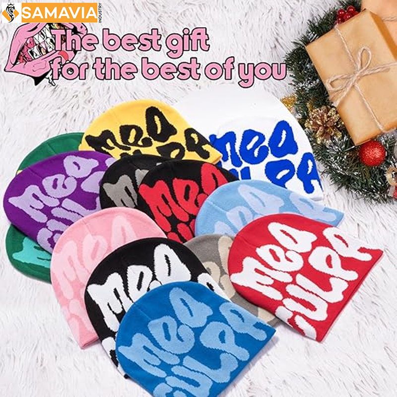หมวกบีนนี่ถักลายตัวอักษรแจ็คการ์ดให้ความอบอุ่นสำหรับฤดูหนาวหมวกแก๊ปทรงหัวกะโหลกแนวสตรีทใส่โลโก้ได้ตามต้องการ