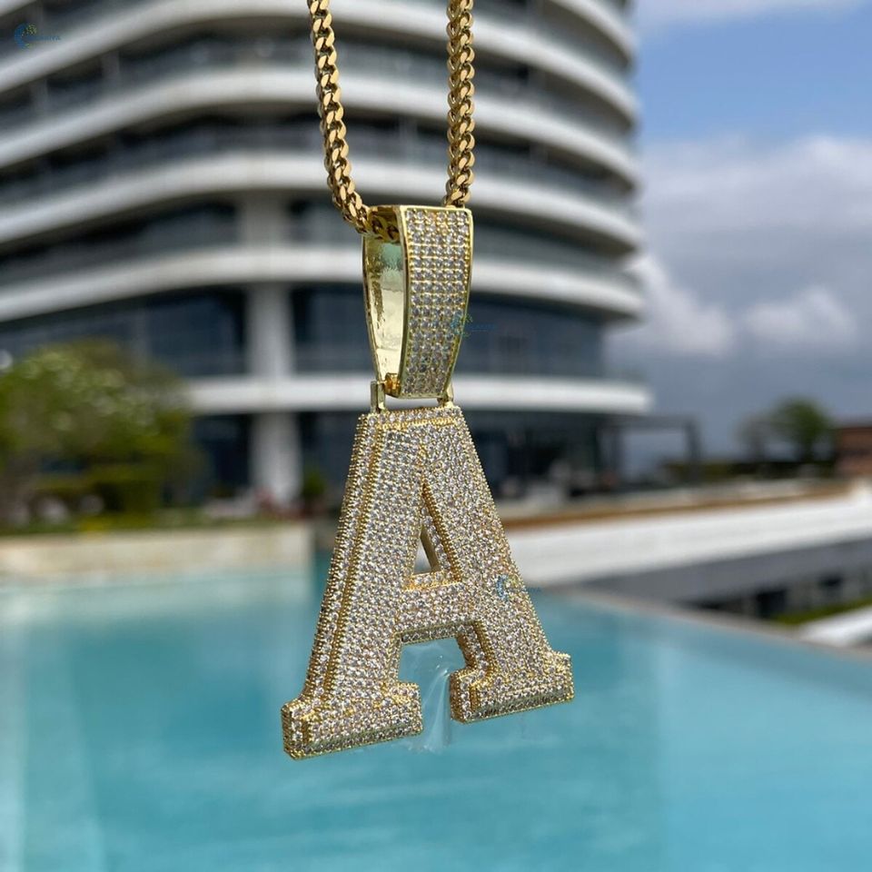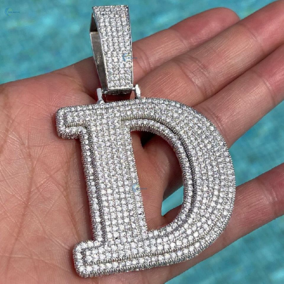 จี้เพชรเลตเตอร์สั่งทำพิเศษ ฝังเพชรแบบไมโครเพฟ สไตล์ฮิปฮอป เงินแท้ 925 ผู้ผลิตขายส่ง