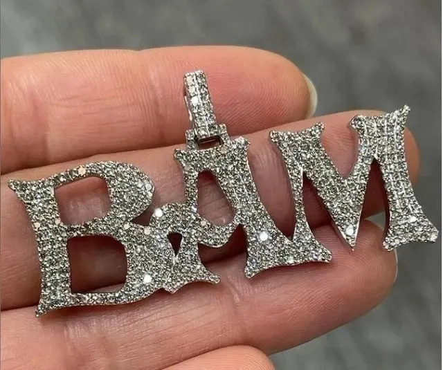 จี้ตัวอักษรสั่งทำพิเศษ ชุบทองคำขาว 14K ประดับโมอิสซาไนต์ทรงกลม 2.6 กะรัต ของขวัญฮิปฮอปสำหรับผู้หญิง