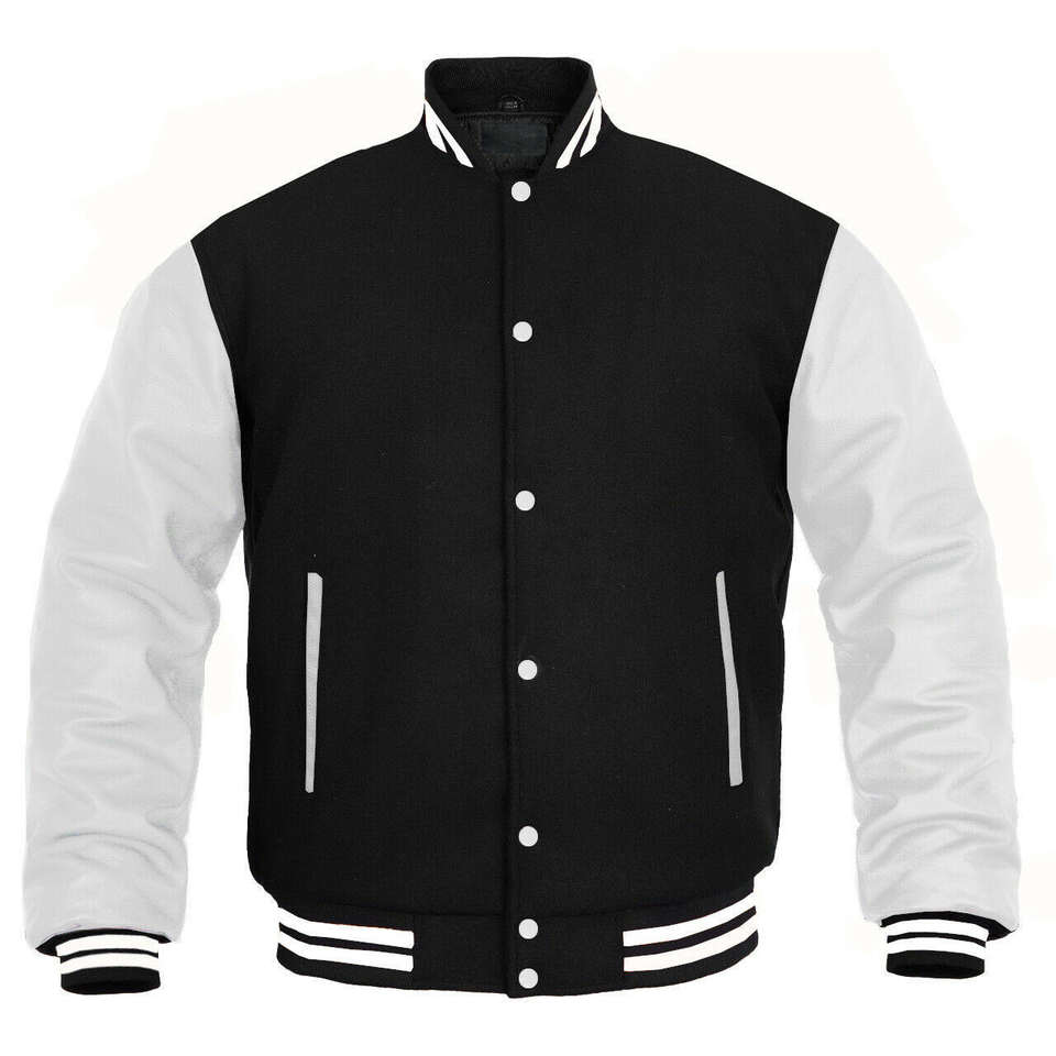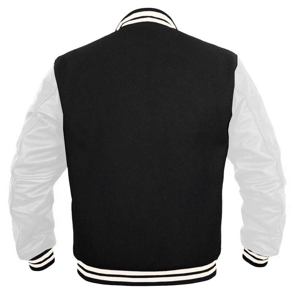 เสื้อแจ็คเก็ต Letterman แบบสั่งทำ สีดำขาว ผ้าฝ้าย 100% ปกคอพับ เป็นมิตรกับสิ่งแวดล้อม คุณภาพพรีเมียม ทรงยาวบาง กันน้ำ สำหรับฤดูหนาว