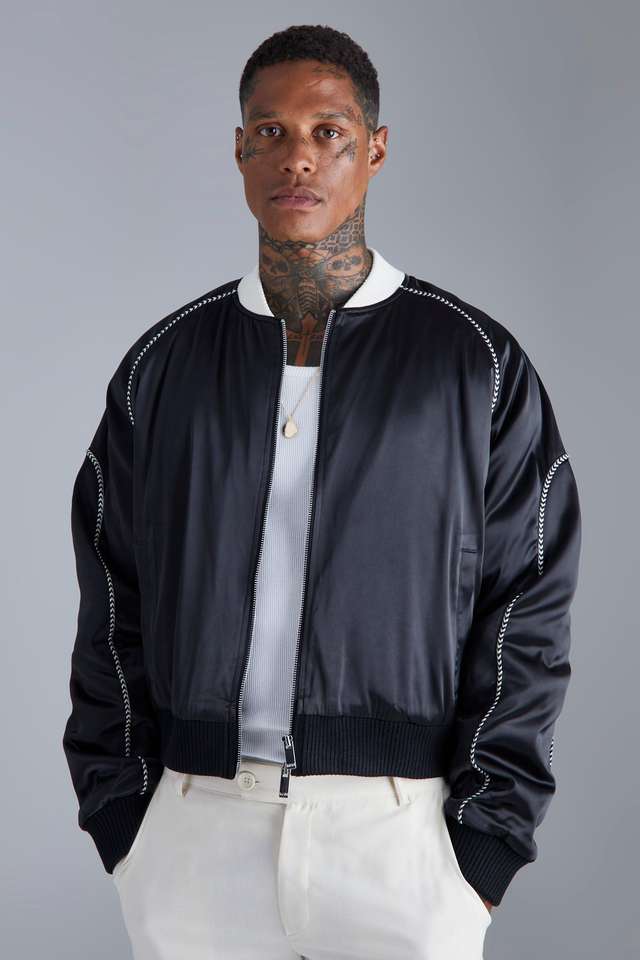 แจ็คเก็ตเบสบอลผ้าซาตินแจ็คเก็ตบอมเบอร์แจ็คเก็ตสไตล์เลตเทอร์แมนออกแบบได้ตามต้องการ
