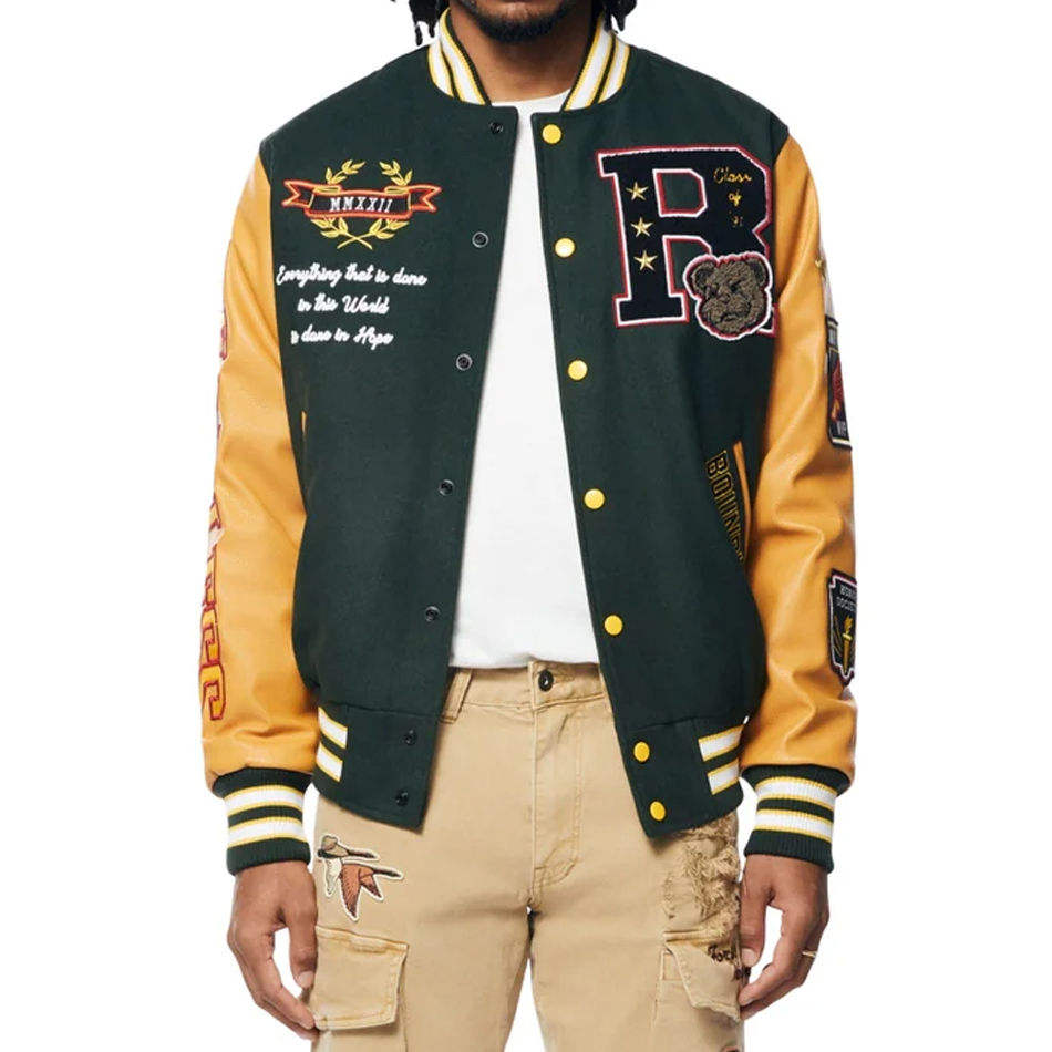แจ็คเก็ต Letterman Varsity แบบสั่งทำพิเศษ ตัวเสื้อทำจากผ้าขนสัตว์ แขนเสื้อแท้ เหมาะสำหรับใส่ในฤดูหนาว แจ็คเก็ตผู้ชายทันสมัยและมีสไตล์