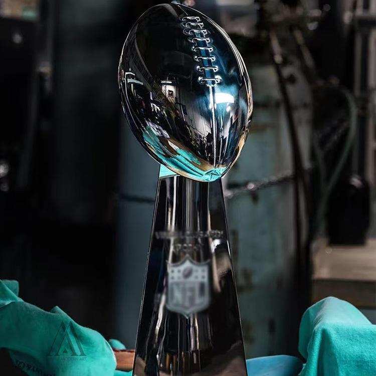 ประติมากรรมลูกฟุตบอลรักบี้โลหะขนาดเท่าของจริง รางวัลกีฬา ของที่ระลึก ขัดเงาด้วยกระจก ถ้วยรางวัลฟุตบอลอเมริกันสแตนเลส