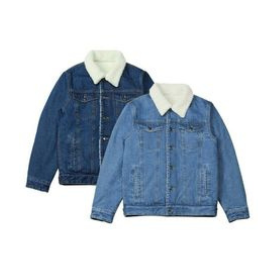 แจ็กเก็ตยีนส์ผ้าขนแกะสำหรับผู้ชายเสื้อแจ็กเก็ตยีนส์สำหรับ100% ผ้าเดนิมสีฟ้าอ่อนออกแบบได้ตามต้องการสำหรับฤดูหนาว