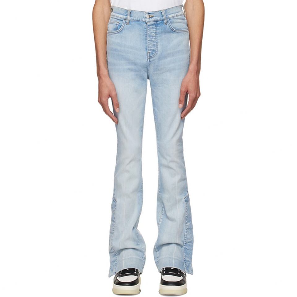 Custom Light Blue Flared Stacked Jeans Men's Ankle Open Slit Stretchy Boot Cut Jean Trousers