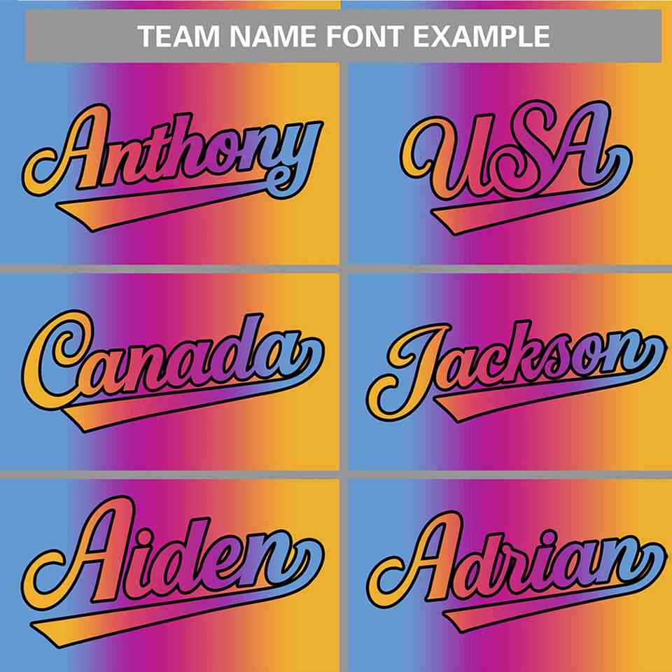 เสื้อเบสบอลแฟชั่นไล่เฉดสีฟ้าอ่อน-ม่วง-ชมพู-เหลืองแบบกำหนดเอง