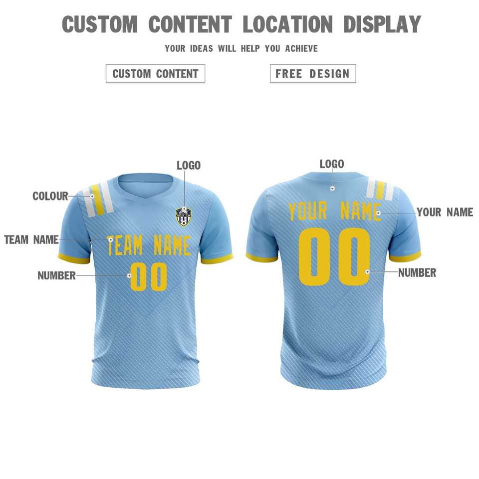 ชุดกีฬาฟุตบอลลายทางสีฟ้าอ่อนแบบกำหนดเองสำหรับผู้ใหญ่