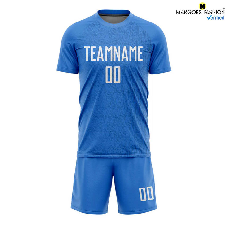 เสื้อฟุตบอลสีฟ้าอ่อนแบบระเหิดสีขาวออกแบบมาเพื่อความสบายสูงสุดสำหรับนักกีฬาตัดความทนทาน