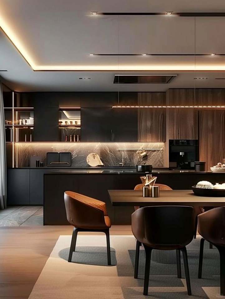 ตู้ครัวสั่งทำพิเศษสไตล์หรูหราแบบเรียบง่าย, ท็อปเคาน์เตอร์หินอ่อน, ตู้ครัวรูปตัวยู, ตู้ครัวแบบรวมเตาปรับแต่งได้