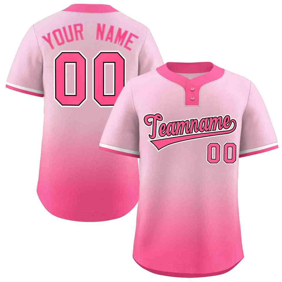 เสื้อซอฟต์บอลแบบสองกระดุมสีชมพูอ่อนไล่เฉดสีชมพู-ดำ แฟชั่นแท้