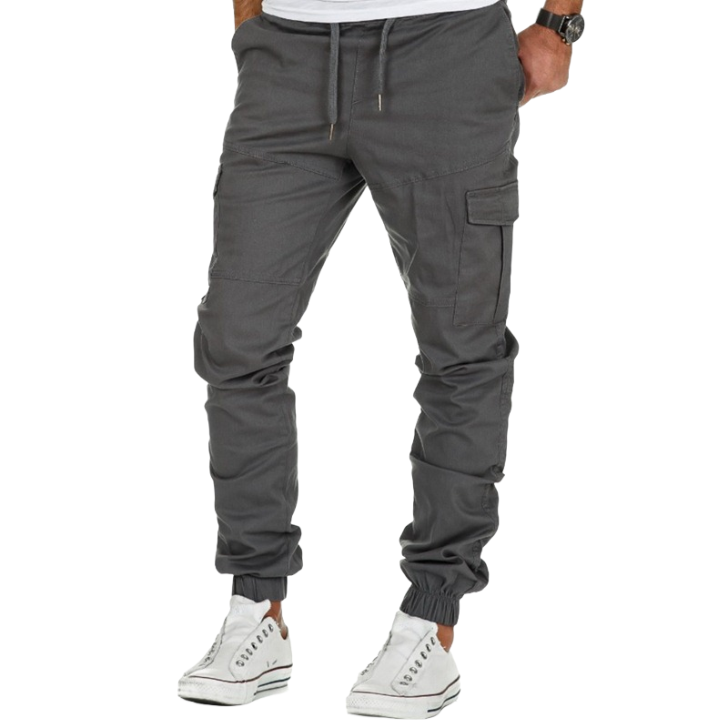 กางเกงลำลองผู้ชายทรงตรง น้ำหนักเบา ผ้าฝ้าย 100% สีเข้ม เอวกลาง ทรงหลวม มีกระเป๋า 6 ช่อง