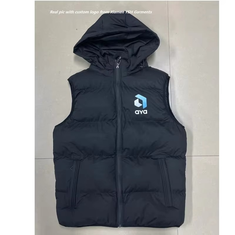 เสื้อกั๊กพัฟเฟอร์น้ำหนักเบาแบบกำหนดเองสำหรับฤดูหนาวบุขนเป็ดสำหรับผู้ชาย เสื้อโค้ทขนเป็ดแบบใหม่สำหรับผู้ชาย เสื้อกั๊กพัฟเฟอร์แบบไม่มีแขนสำหรับกิจกรรมกลางแจ้ง