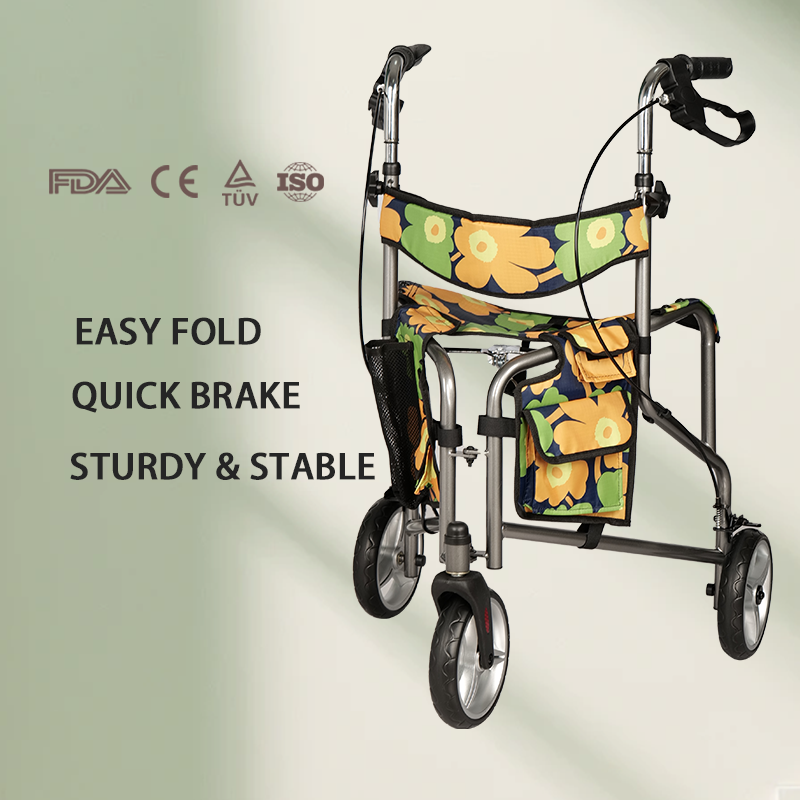 Custom Lightweight Durable Aluminum Oxford Cloth Rolling Walker 5-level Height Adjustable 100KG Load Capacity CE Certified Disc