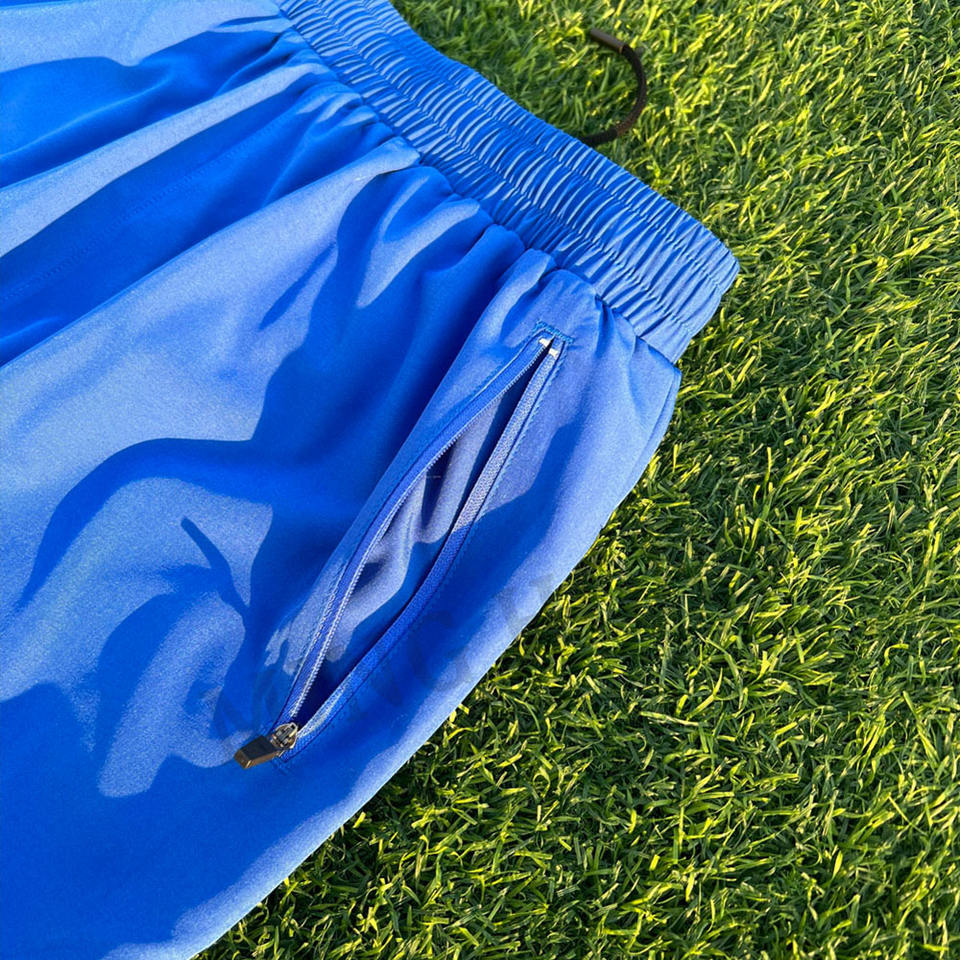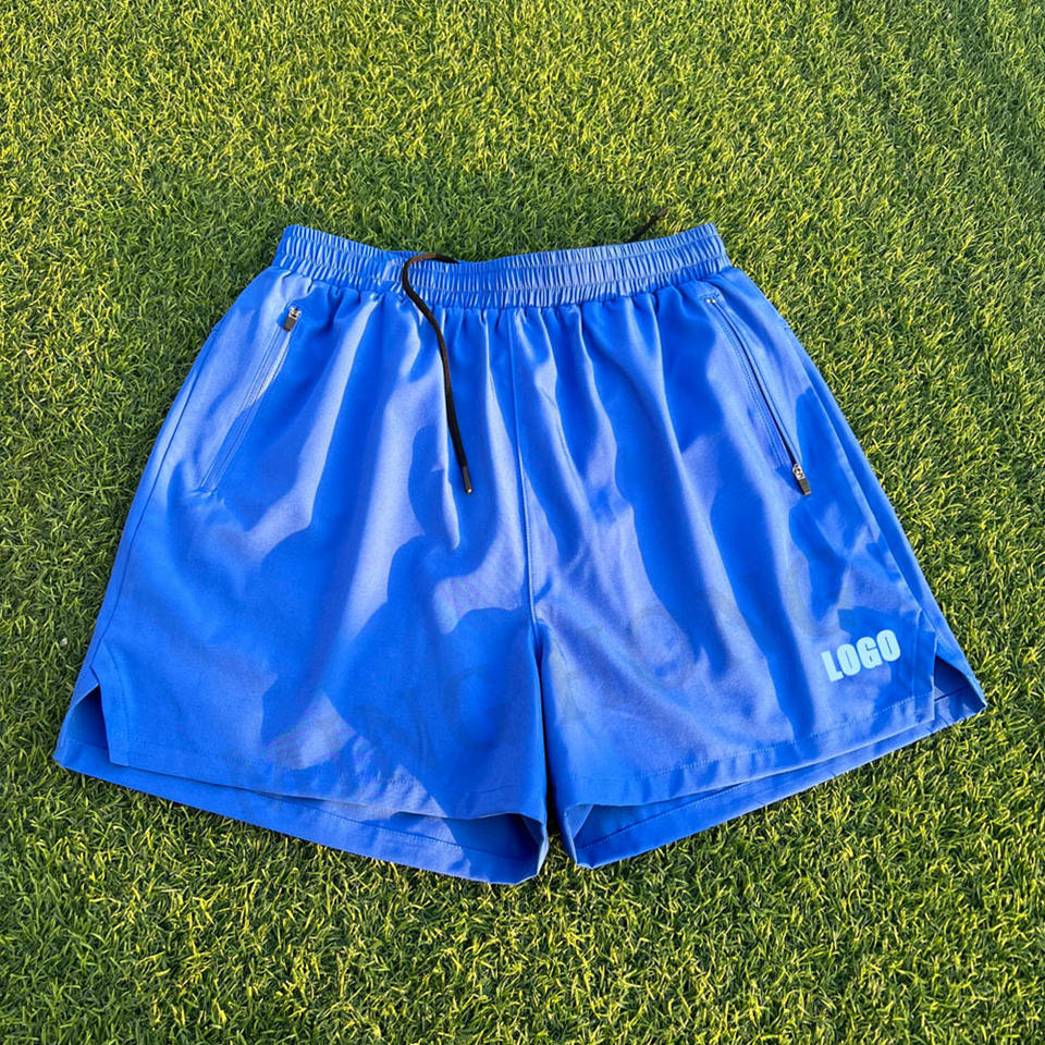 กางเกงขาสั้นผู้ชายสำหรับวิ่งเข็มขัดรูดซิปด้านข้างทำจากไนลอนน้ำหนักเบาตามสั่ง