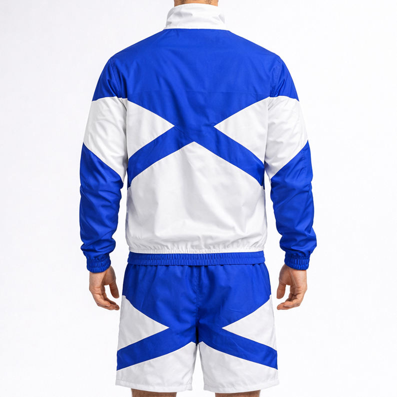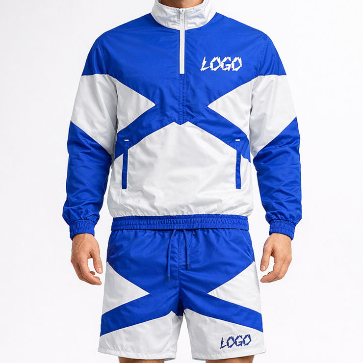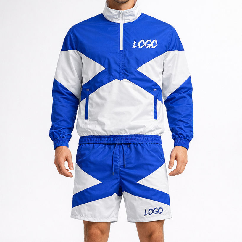 ชุดวอร์มกีฬาแบบเบา น้ำหนักเบา สไตล์สตรีทแวร์ 2 ชิ้น ผ้าไนลอนยับ สะท้อนแสง แจ็คเก็ตกันลมและกางเกงขายาว