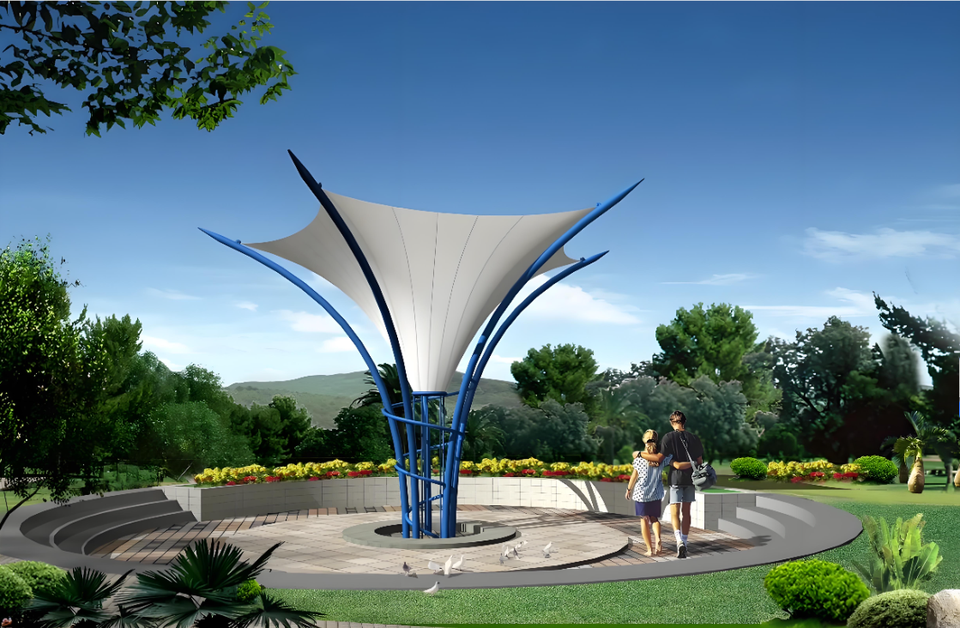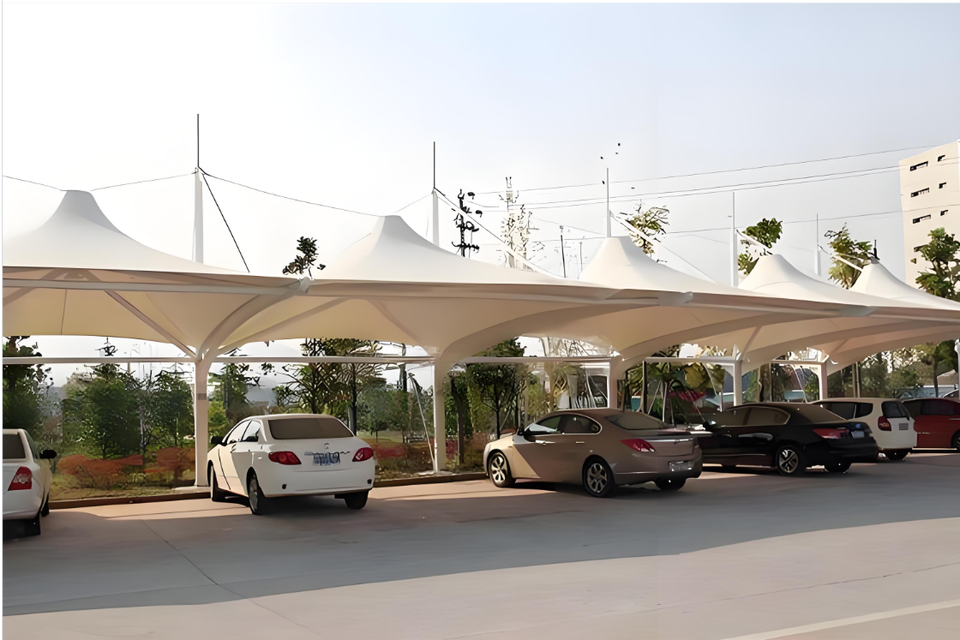 โครงสร้างเหล็กน้ำหนักเบาแบบกำหนดเองพร้อมงานเชื่อมตัดเย็บผ้าเมมเบรนสำหรับสนามกีฬา ลานจอดรถ และห้องจัดงาน - ผ้า PTFE/PVC