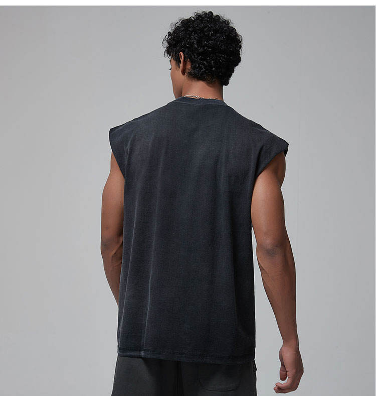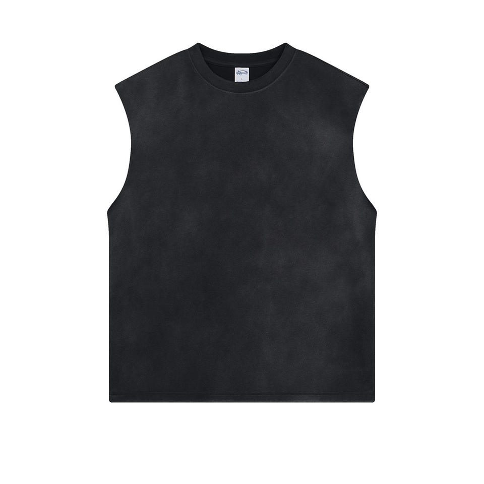 เสื้อแขนกุด250GSM ผ้าฝ้าย100% สำหรับผู้ชายเสื้อกล้ามออกกำลังกายลำลองคอกลมเสื้อซักกรดสำหรับผู้ชายโลโก้แบบกำหนดเอง