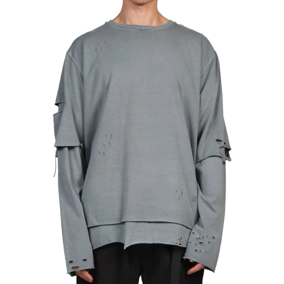 เสื้อยืดแขนยาวสองชั้นทรงบ็อกซี่ผ้าฝ้าย 100% พิมพ์ลายโลโก้แบบ DTG สไตล์วินเทจฟอกสี สำหรับผู้ชาย พร้อมโลโก้แบบกำหนดเอง