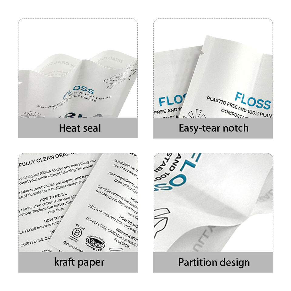 ถุงย่อยสลายได้3ด้านสำหรับบรรจุภัณฑ์ไหมขัดฟันแปรงซอกฟันโลโก้100% โรงงานตามสั่ง