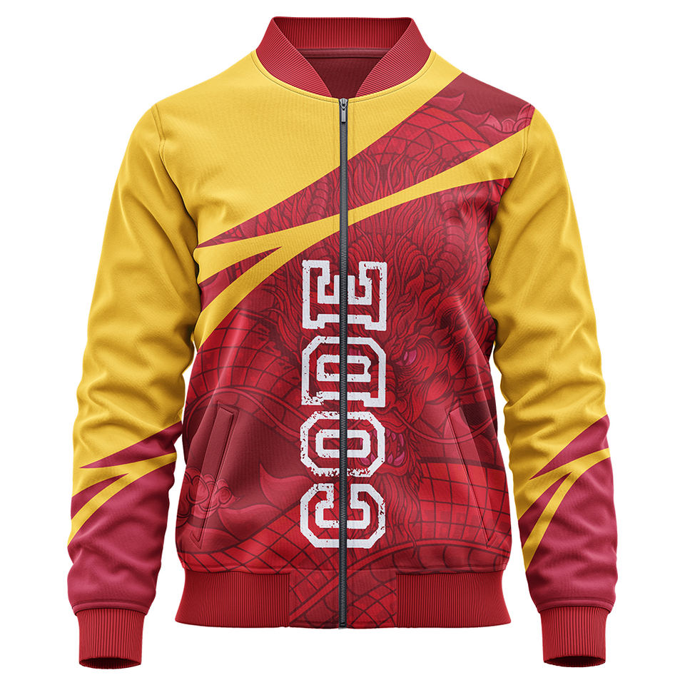 เสื้อแจ็กเก็ตเบสบอลบอมเบอร์ผ้าซาตินโพลีเอสเตอร์ปักโลโก้ตาม100% ของผู้ชายคอตั้งสไตล์ฤดูหนาว
