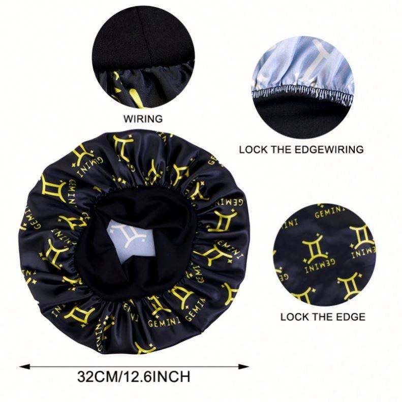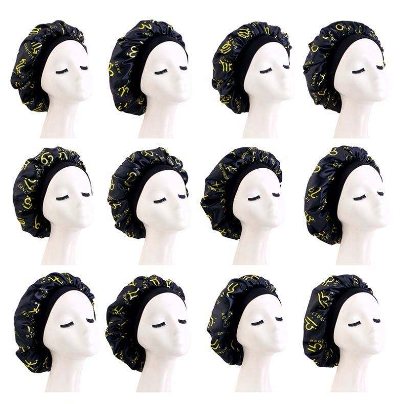 หมวกซาตินพิมพ์ลาย 12 ราศี พร้อมโลโก้สั่งทำพิเศษ ขนาดใหญ่พิเศษ สำหรับผู้หญิง ใช้ได้ทุกวัน ทุกฤดู