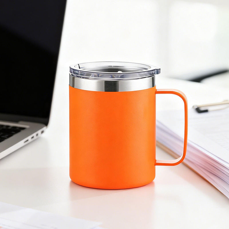 แก้วน้ำสแตนเลสแบบมีฝาปิดสุญญากาศ ขนาด 12 ออนซ์/14 ออนซ์ ผนังสองชั้น เก็บความร้อน/เย็น สำหรับเดินทาง แคมป์ปิ้ง พร้อมโลโก้สั่งทำ
