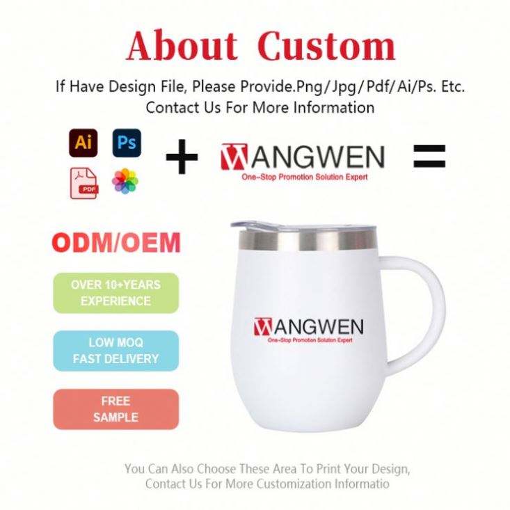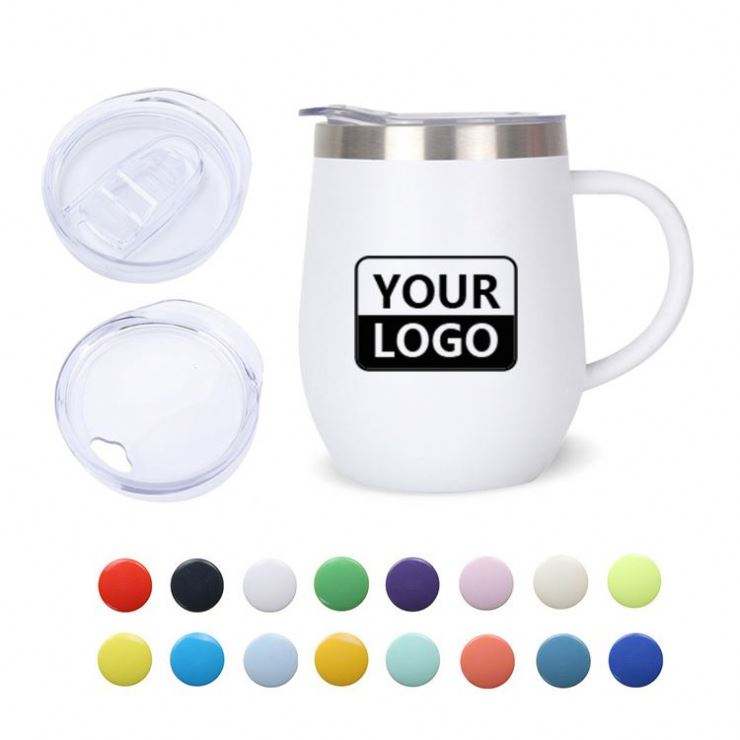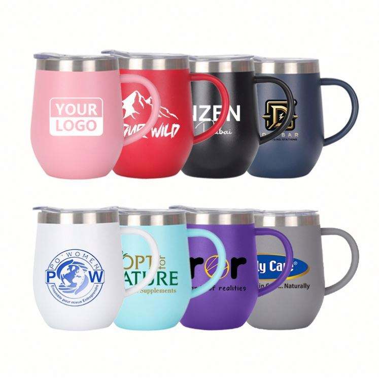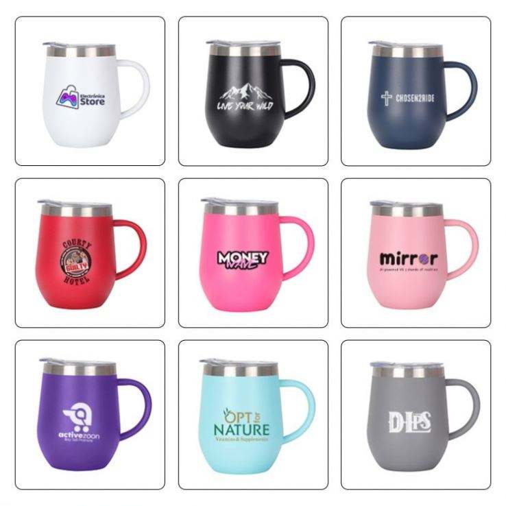 Custom Logo 12oz Egg Mugs Stainless Steel Wine Tumbler Double Wall Vacuum Coffee Mugs with Lid
