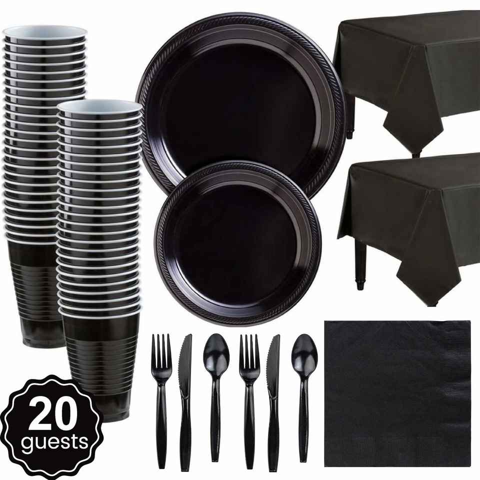 ชุดอุปกรณ์จัดเลี้ยงแบบใช้แล้วทิ้ง 142 ชิ้น พร้อมโลโก้สั่งทำ สำหรับงานวันเกิด ประกอบด้วยจานกระดาษ ผ้าปูโต๊ะ แก้ว กระดาษเช็ดปาก มีด ส้อม ช้อน