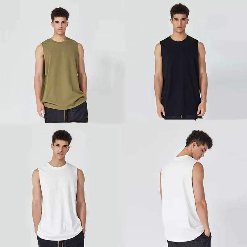 เสื้อกล้ามออกกำลังกายแขนกุดสำหรับผู้ชายเสื้อออกกำลังกายผ้าฝ้าย GSM 180โลโก้ได้ตามต้องการ