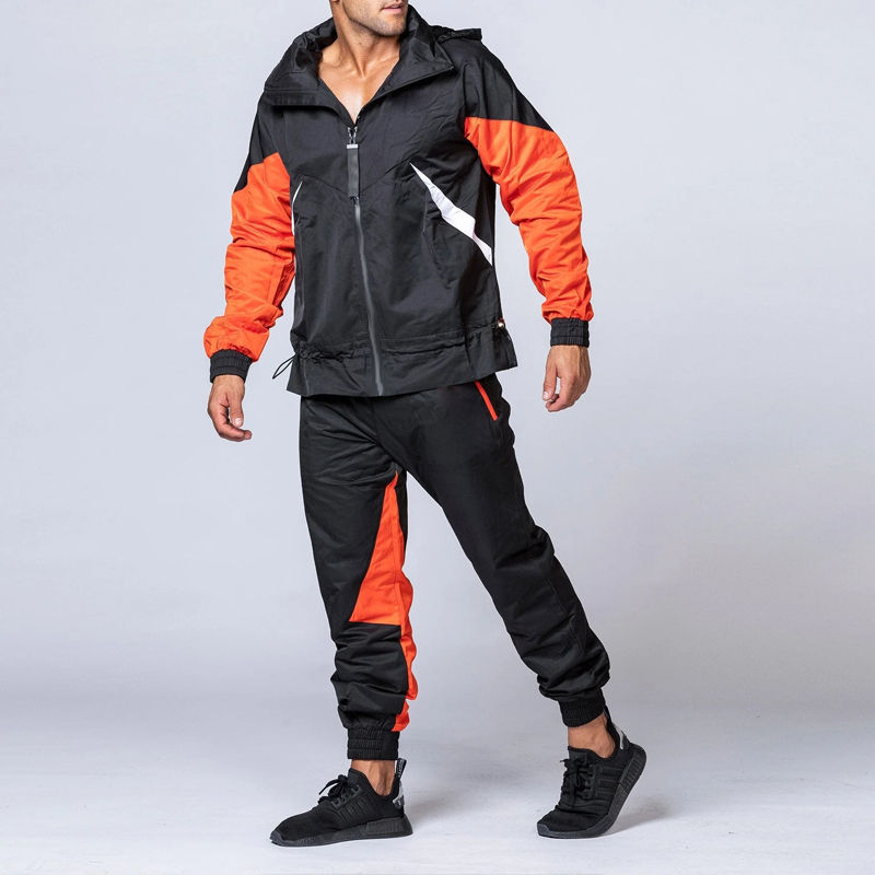 ชุดกีฬาผู้ชายแบบ 2 ชิ้น พิมพ์โลโก้ได้ ผ้าโพลีเอสเตอร์ 100% เสื้อแจ็คเก็ตกันลม กางเกงวอร์ม ชุดออกกำลังกายฤดูหนาว ชุดวิ่ง ชุดฮู้ดดี้ ฤดูใบไม้ผลิ
