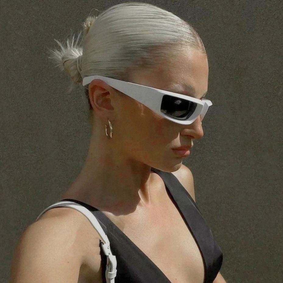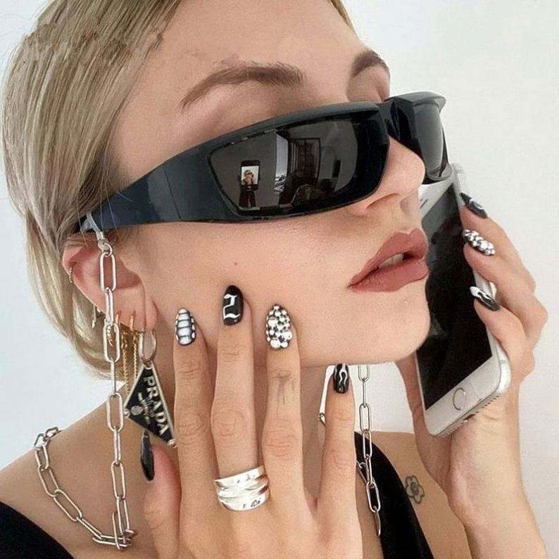 แว่นกันแดดสไตล์พังก์สีดำเงินแบบมีกระจก รุ่นแฟชั่นปี 2022 สำหรับผู้ชายและผู้หญิง โลโก้สั่งทำได้