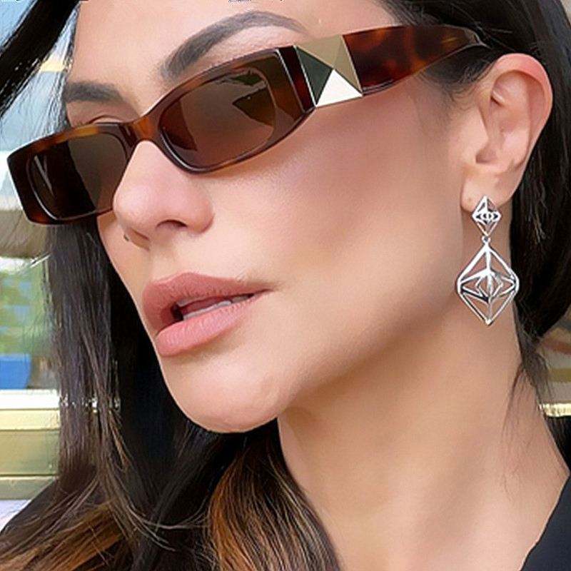 แว่นกันแดดแฟชั่นวินเทจลายเสือดาวทรงสี่เหลี่ยมผืนผ้าสำหรับผู้หญิง รุ่นปี 2022 พร้อมโลโก้สั่งทำพิเศษ ป้องกันรังสียูวี 400 กรอบเล็กทรงเหลี่ยม