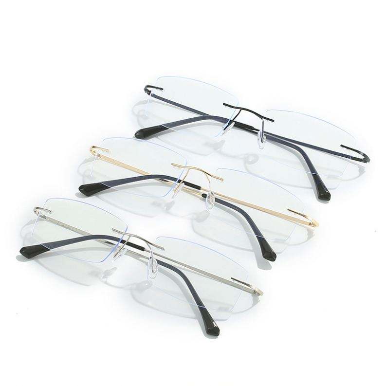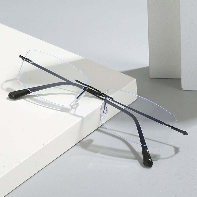 Custom Logo 2025 Fashion Men Alloy Square Eyeglasses Frames Rimless Anti Blue Optical Glasses
